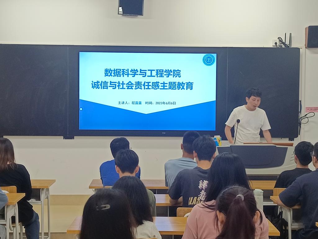 为培养员工诚信意识,增强同学们社会责任感,6月6日,数据科学与工程学院面向受国家相关政策资助的员工开展了诚信与社会责任感主题教育,活动由辅导员程露露主持。