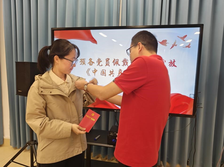 大会第三议题为研究讨论预备党员吴远彤同志转正事宜。按照组织程序,预备党员吴远彤从个人情况、对党的认识及入党动机、预备期表现、未来展望等方面详细汇报了自己在预备考察期的表现,表达了成为一名正式党员的决心。入党介绍人报告了预备党员在预备期的表现,并发表同意其转正的意见。经讨论和无记名投票,大家一致同意吴远彤同志转为中共正式党员。会议最后,支部党员欧阳佳同志为新党员佩戴党员徽章、发放《中国共产党章程》,并由陈海伦同志带领全体党员重温入党誓词。