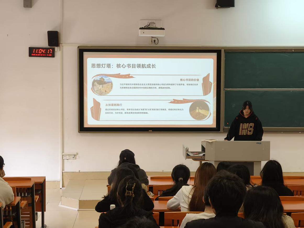 学习会通过五个核心模块展开。“时代召唤与青春担当”环节阐释青年时代定位,倡导学子投身国家重点领域;“经典浸润与初心传承”板块解读书中事例,传递习近平总书记对青年的关怀与期望;“理论领航与方向指引”环节解读《论党的青年工作》核心要义,引导学子对接“十五五”规划找准定位;“学用转化与实践赋能”环节明确“以学铸魂、增智、正风、促干”实践路径;“行动倡议与未来展望”环节发出四点倡议,号召学子以经典为指引奋进复兴征程。