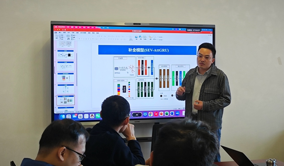 2025年12月16日,董成祥博士在求新楼410做了“基于深度学习的城市路网交通速度补全”的学术沙龙报告。报告围绕城市交通路网中交通速度数据缺失这一实际问题展开,系统介绍了针对点缺失与连续缺失等典型场景的研究思路,概述了一种融合图卷积网络与注意力机制门控循环单元的深度学习方法。报告从模型设计、时空相关性刻画及应用效果等方面进行了分享,为交通大数据分析与智能交通应用提供了有益参考。