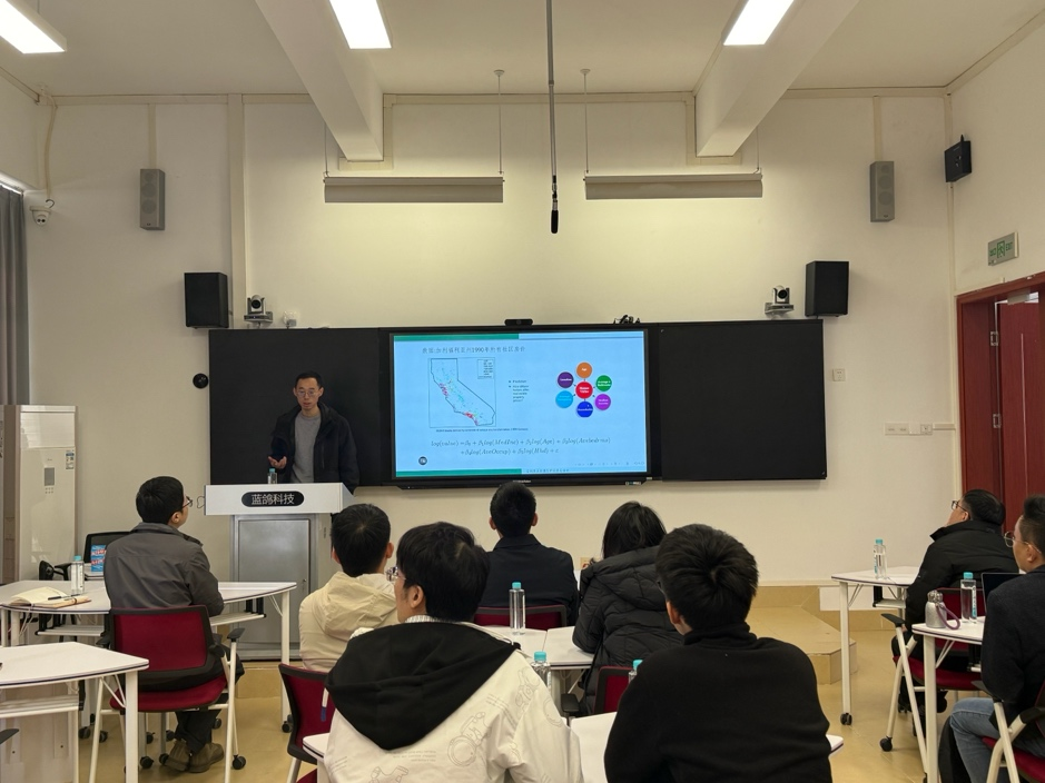 2026年1月6日,刘恒博士在求新楼622智慧教室做了主题为“空间变系数模型的自适应估计”的学术沙龙报告。报告围绕社区房价预测与模型参数变化估计问题,从研究背景与现实需求出发,阐述了空间异质性对建模分析的影响,介绍了空间变系数模型自适应估计的基本思想与总体框架。相关研究有助于刻画不同区域之间的差异特征,为提升模型预测稳定性和解释能力提供了新的思路。