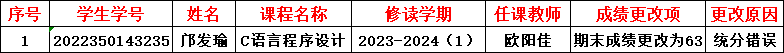 2023-2024学年第二学期提出更改课程成绩的公示